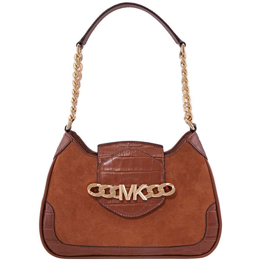 Brown Ladies Hally Small Suede And Crocodile Embossed Shoulder Bag