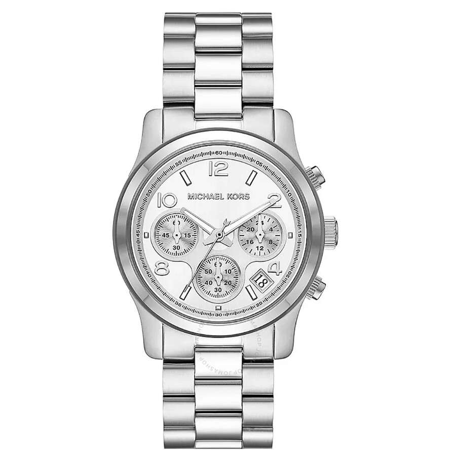 Runway Chronograph Quartz Silver Dial Ladies Watch MK7325