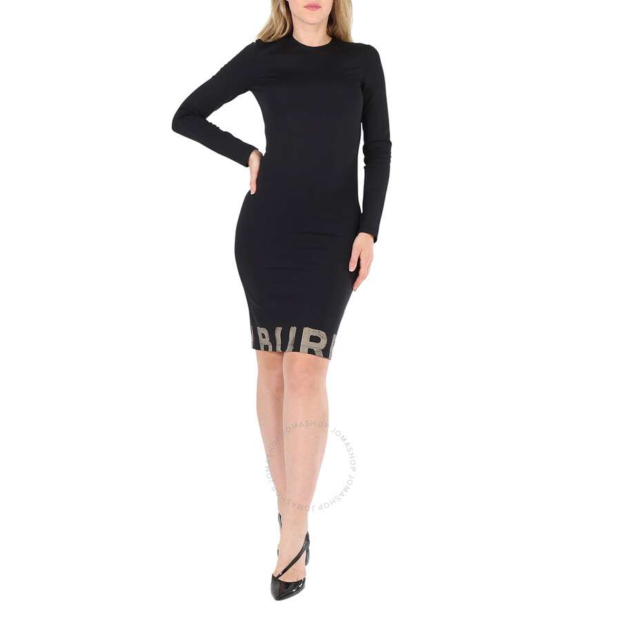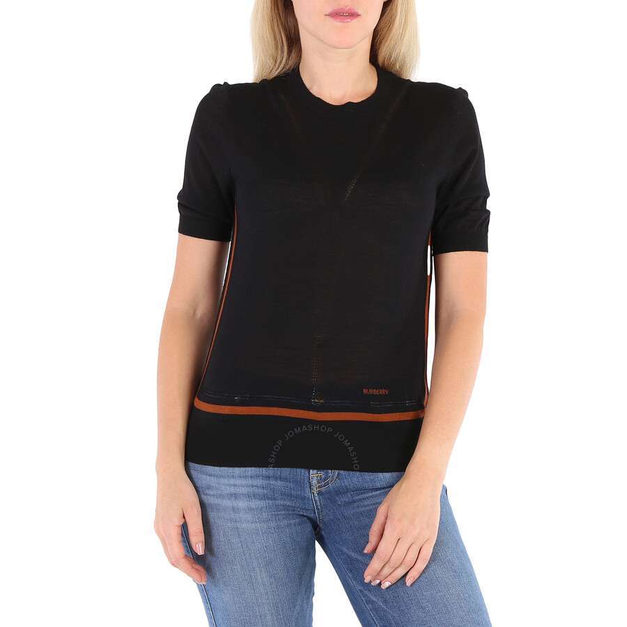 Ladies Black Short Sleeve Logo Intarsia Wool Silk Cashmere Top