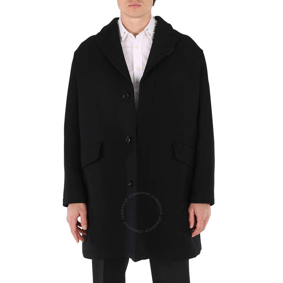 Men’s Black Mid-Length Single-Breasted Wool Silk Coat
