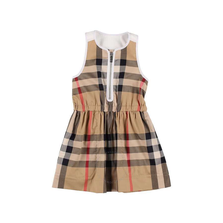 Girls Archive Beige Check Stretch Sleeveless Cotton Zip-Up Dress
