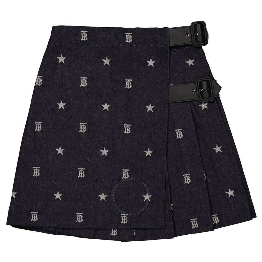 Girls Indigo Star And Monogram Motif Japanese Denim Skirt