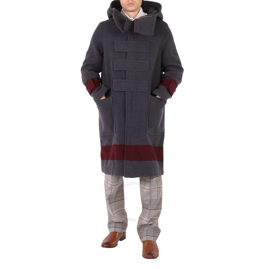 Men’s Dark Charcoal Brown Striped Touch-Strap Duffle Coat