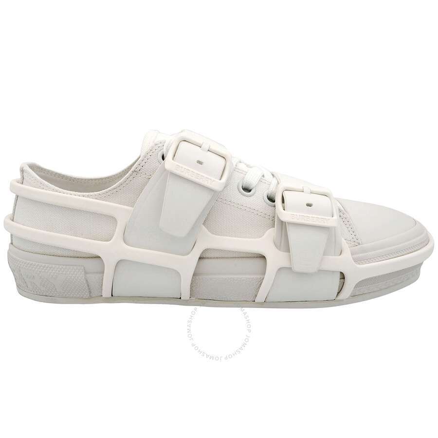 Men’s White Vers Cotton And Leather Belted Low-Top Sneakers