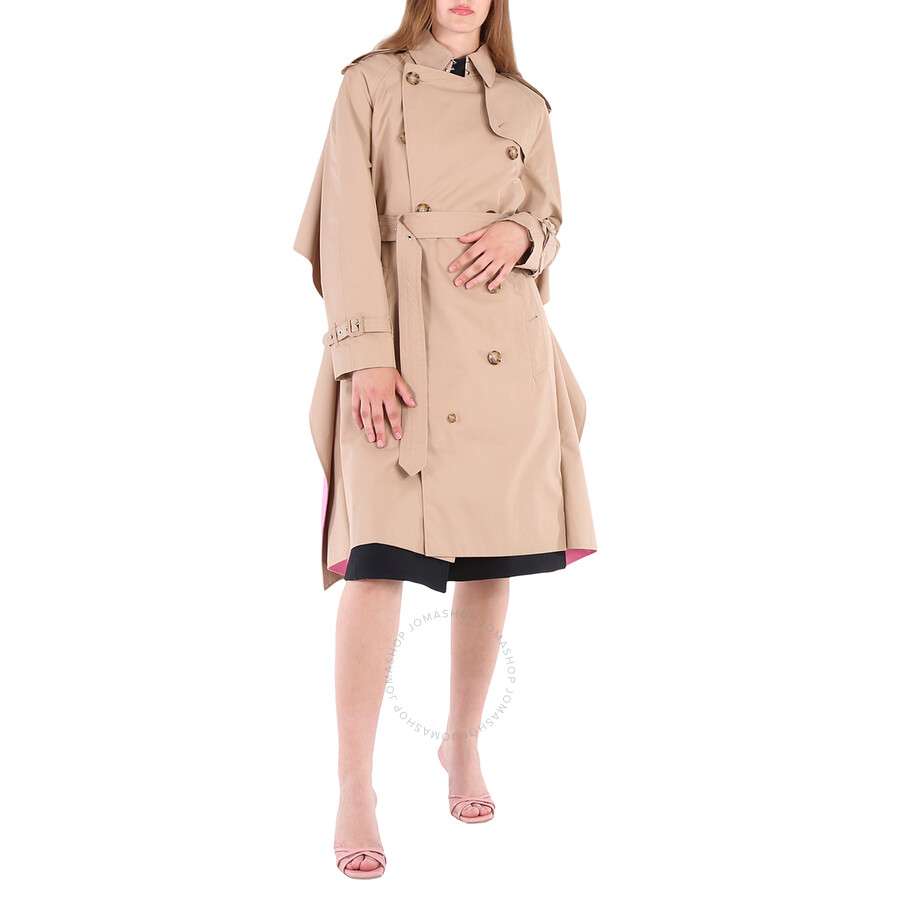 Soft Fawn Cotton Twill Contrast Cape Detail Double-breasted Trench Coat
