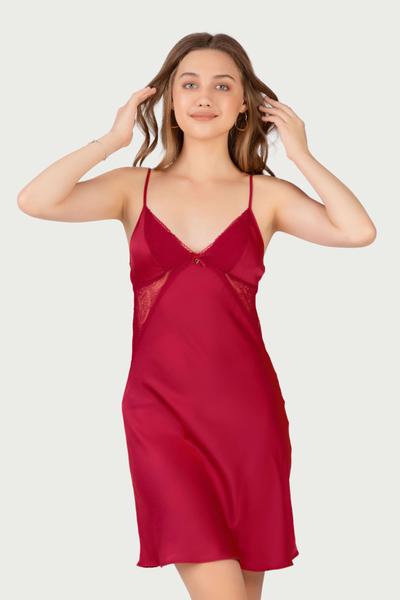 Đầm ngắn Vera Satin trơn phối Ren – V0453
