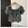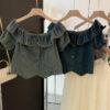 Áo jeans cổ bèo trễ vai hàng QC loại 1 chất jeans mềm ảnh thật – hàng có sẵn