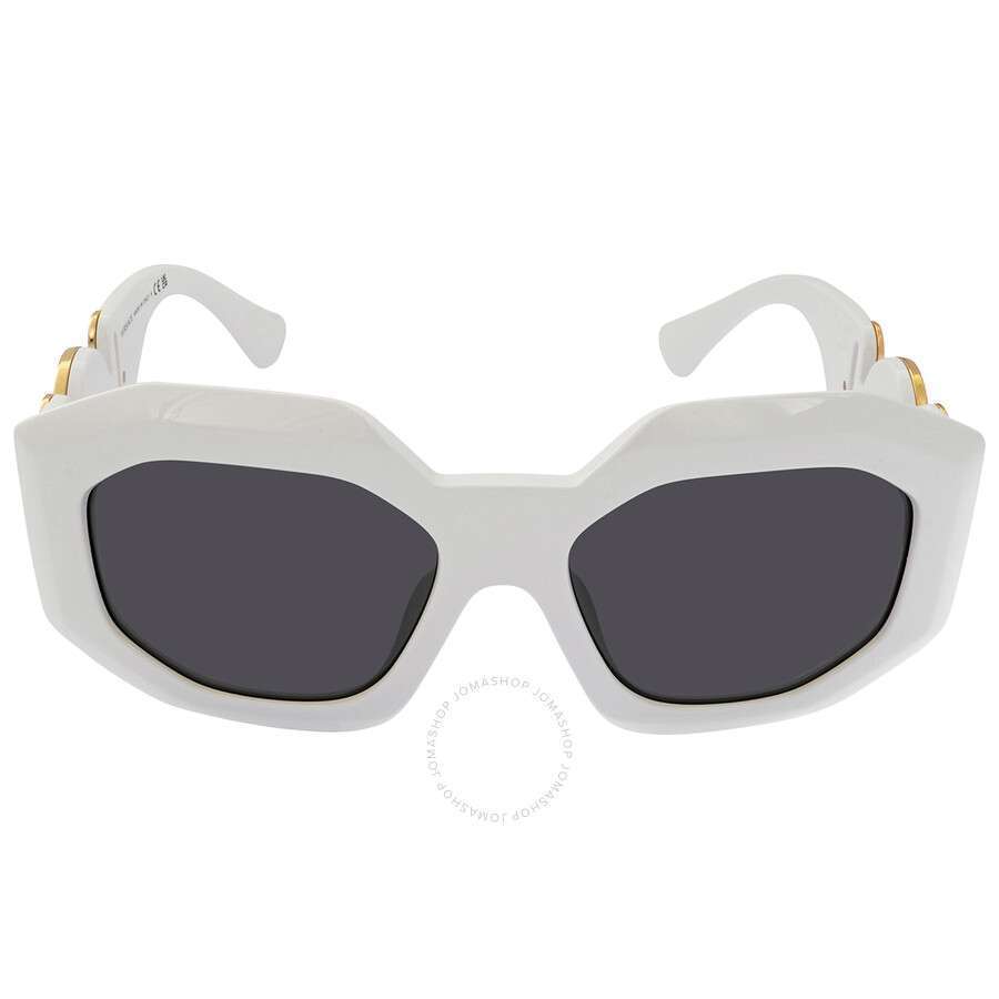 Versace Sunglasses. Series number: VE4424U. Color code: 314/87. Shape: Irregular. Lens Width: 56 mm. Lens Bridge: 18 mm. Arm Length: 145 mm. 100% UV protection. Non-Polarized. Frame Material: Plastic. Frame Color: White. Lenses Type: Dark Gray. Rim Style: Full-Rim. UPC/EAN code: 8056597690119. Versace Dark Gray Irregular Ladies Sunglasses VE4424U 314/87 56.Manufacturer’s Packaging Included. Packaging Size And Color May Vary.