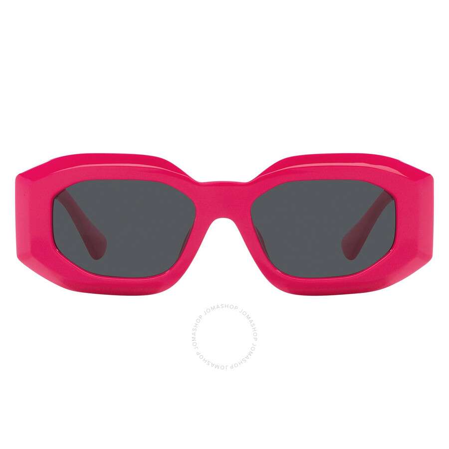 Versace Sunglasses. Series number: VE4425U. Color code: 536787. Shape: Irregular. Lens Width: 54 mm. Lens Bridge: 18 mm. Arm Length: 145 mm. 100% UV protection. Frame Material: Plastic. Frame Color: Pink. Lenses Type: Dark Grey. Rim Style: Full-Rim. UPC/EAN code: 8056597697156. Versace Dark Grey Irregular Men’s Sunglasses VE4425U 536787 54. Manufacturer’s Packaging Included. Packaging Size And Color May Vary.