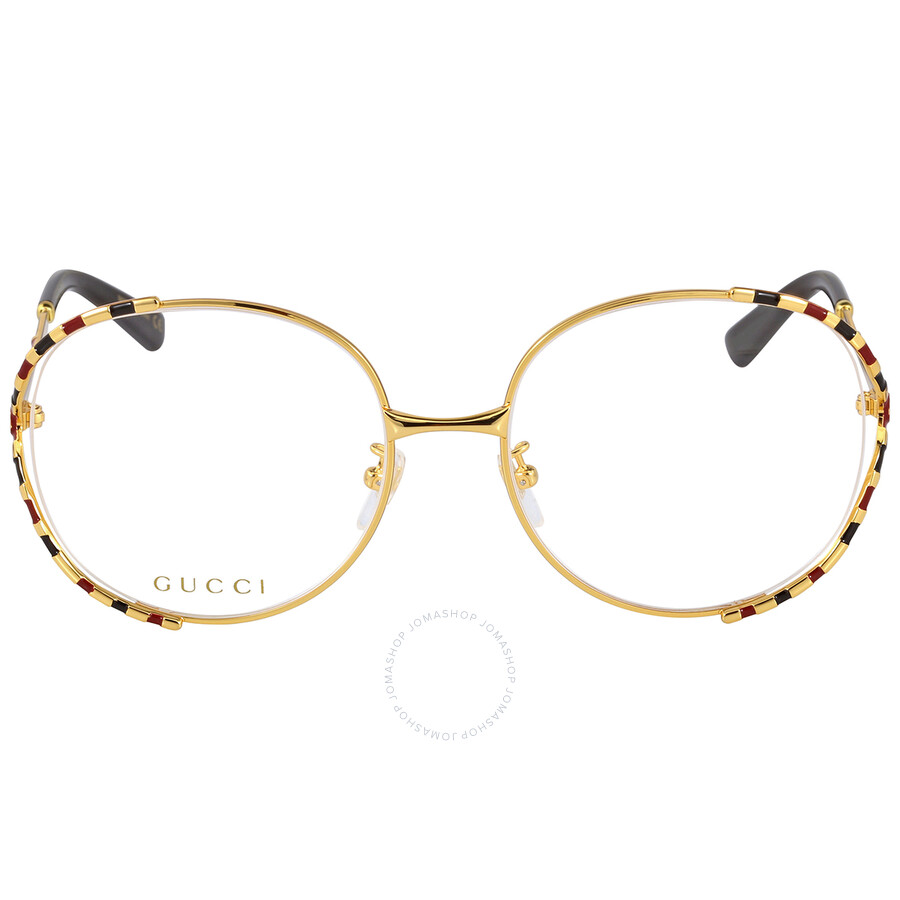 Gucci Eyeglasses. Color code: 003. Color: Demo Lens. Shape: Round. Lens Width: 58 mm. Lens Bridge: 19 mm. Arm Length: 135 mm. Frame Material: Metal. Frame Color: Gold Tone. Lenses Type: Demo. Rim Style: Full-Rim. UPC/EAN code: 889652255897. Gucci Demo Round Ladies Eyeglasses GG0596OA 003 58. Includes: Manufacturers case, cloth and paperwork *may differ from the photo above.