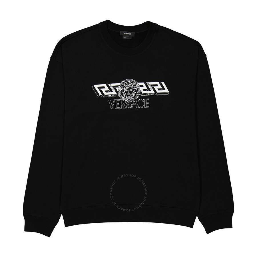 Versace Men’s Tops. Fashion category: Hoodies & Sweatshirts. SKU: 1003992 1A02861 1B000. Color: Black. Versace Men’s Black New Logo Crew Sweatshirt. Made in loop-back cotton jersey, this sweatshirt features a classic fit, drop shoulder, long sleeves, straight hem, round neck, ribbed trims, and decorated with the brand’s greca print alongside the iconic Medusa motif in the centre. Cotton 100%