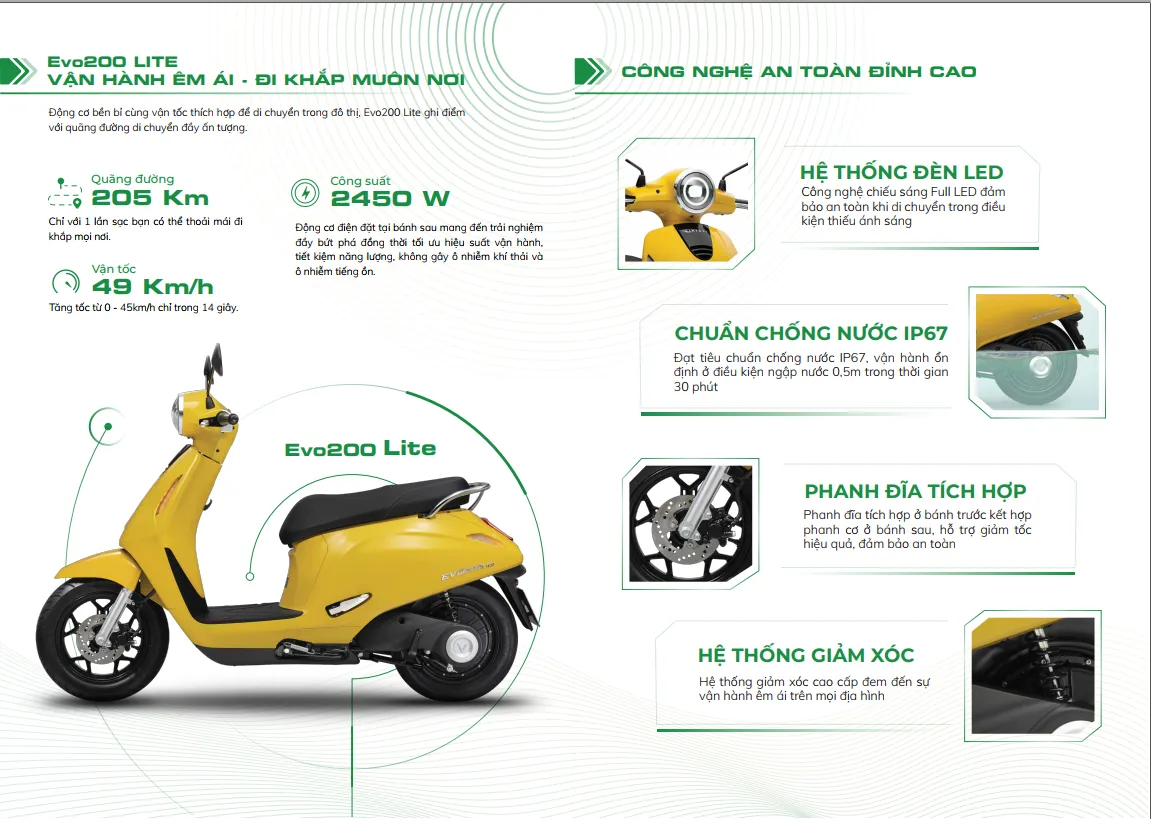 - Quãng đường di chuyển: 205 km/1 lần sạc