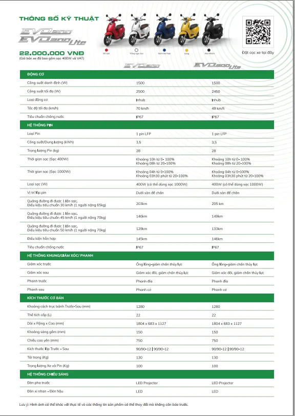 - Thời gian sạc tiêu chuẩn: Sạc 400W – 10h
