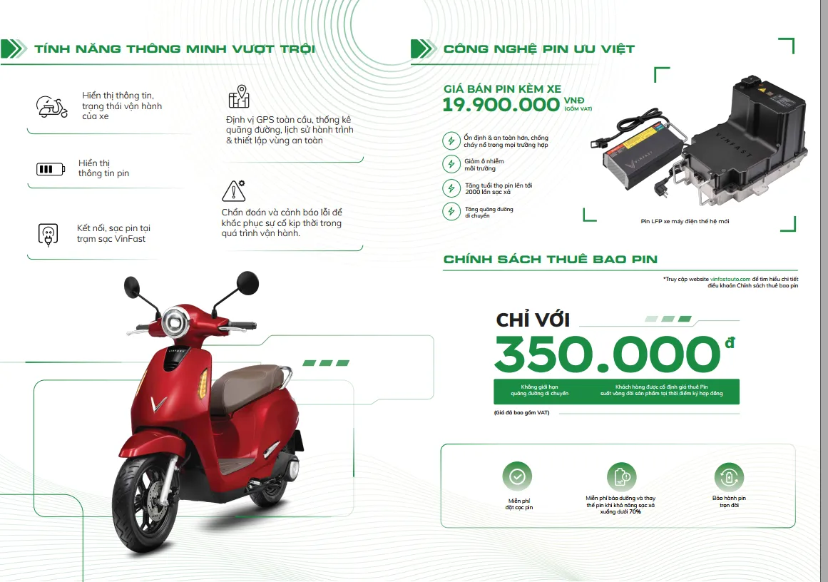 - Trọng lượng: 97 kg bao gồm pin LFP
