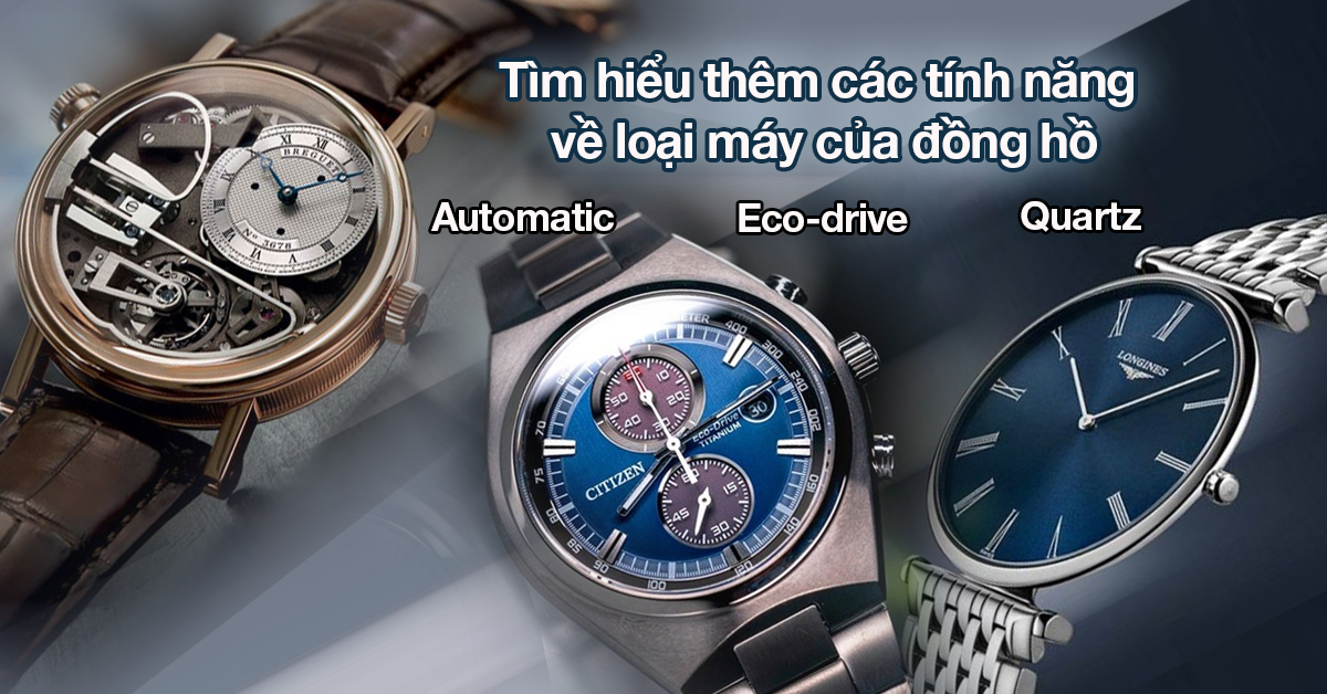 Trên thị trường đồng hồ thời trang hiện nay có 3 loại máy đồng hồ phổ biến là Eco-Drive, Automatic và Quartz. Để hiểu thêm về những tính năng, cách sử dụng của những bộ máy đồng hồ này, mời bạn tham khảo nội dung bên dưới.