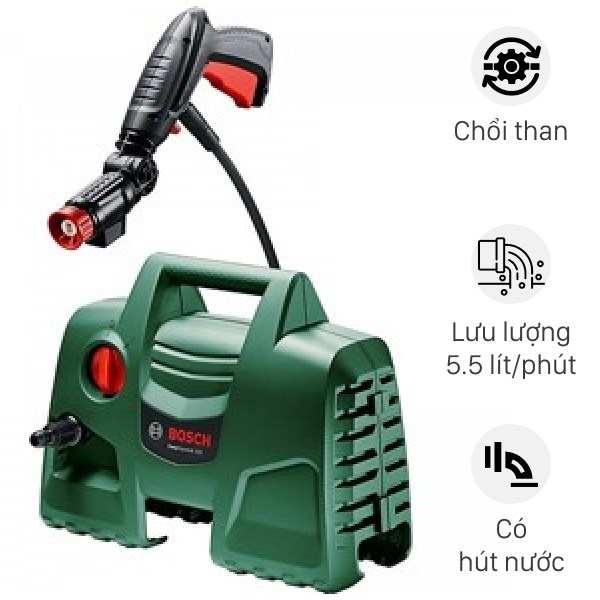 - Tính năng nổi bật: Hỗ trợ xịt rửa cho những nguồn nước đầu vào dưới 40 độ, mô-tơ chổi than có khối lượng nhẹ, dễ dàng di chuyển.