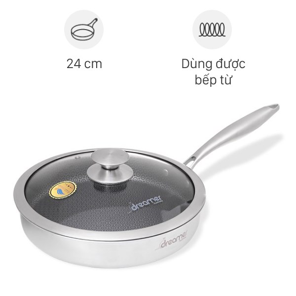 2Chảo inox sâu chống dính tổ ong đáy từ nắp kính 24 cm Dreamer DKW-NFL124B